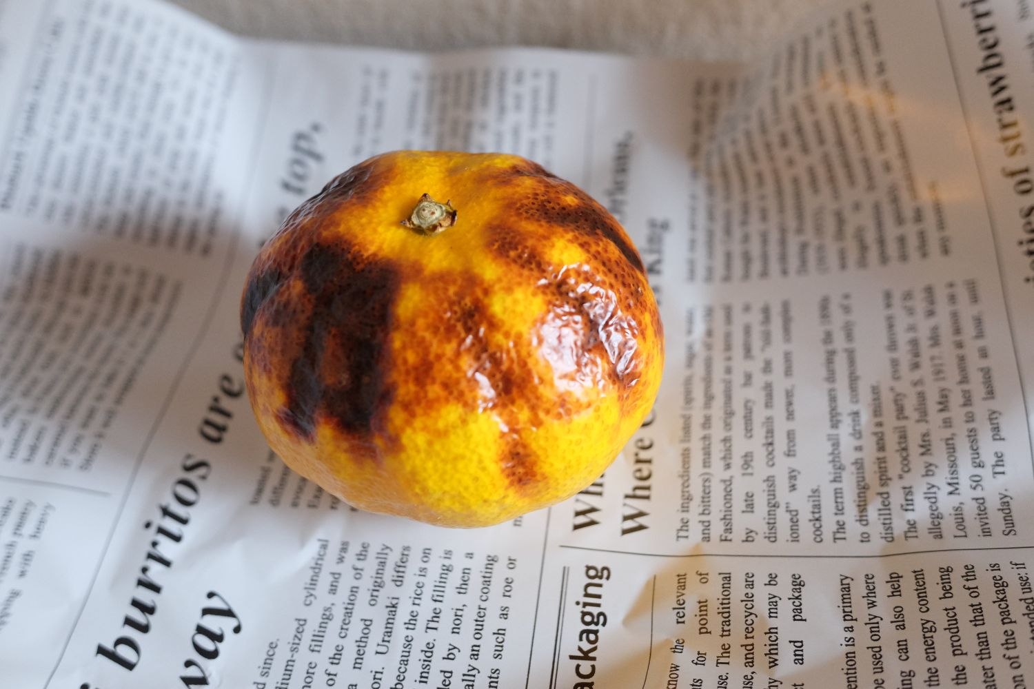 〈作り方〉みかんの皮をしっかりと洗う。みかんをトースターに並べ、皮にほんのり焦げ目がつくまで焼く。