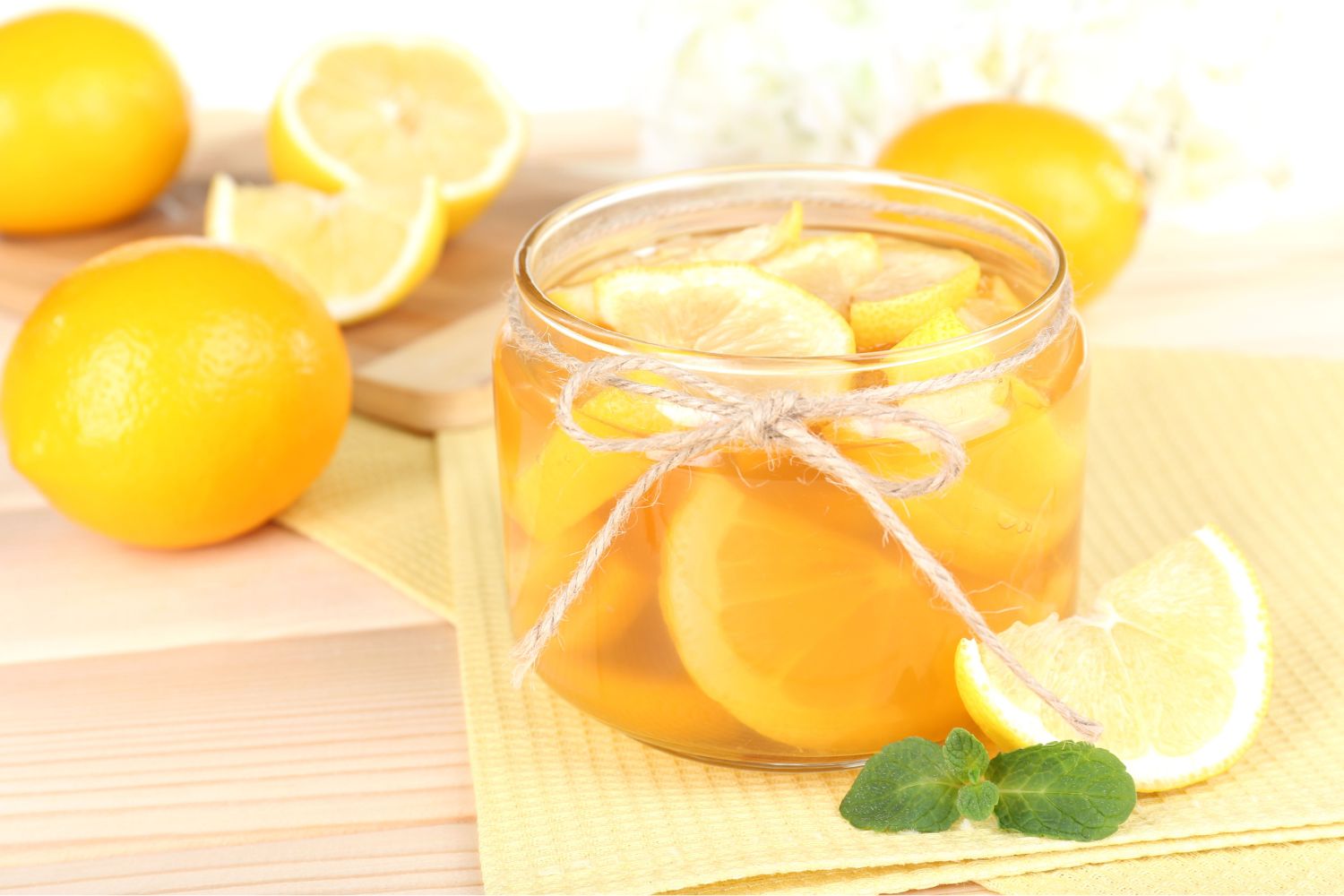 輪切りレモンをはちみつに漬け込んで一晩置きます。漬け汁は水で割ってレモネードなどのドリンクに。果実と皮はそのままみじん切りにしてドリンクに入れ、風味も丸ごと味わいましょう。